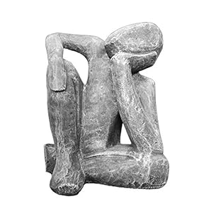 Tiefes Kunsthandwerk Steinfigur Träumer in Schiefergrau, abstrakte Deko-Figur für Haus und Garten, Moderne Statue als Garten-Figur