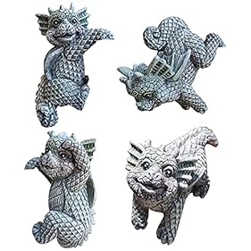 Canghai Drachen Figuren 4Pcs Baby Drachen Statuen Harz Gartendeko Figuren für Außen, Gargoyle Garten Deko Drachen Garten Statuen Deko