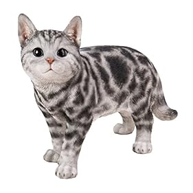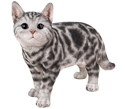 Dehner Dekofigur Katze stehend getigert, ca. 40 x 16 x 29 cm, Polyresin, grau