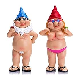 Gartenzwerg Lustiges Zwergenpaar,Lustige Zwergenstatue, Polyresin, Für Rasendekorationen,Innen- oder Außendekorationen, Vollfarbig (Gartendeko Zwerge)