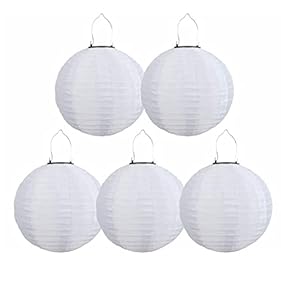 Obubble 5 Stück Solar Lampion Weiß LED Lampion Party Garten Laterne Lichter Dekoration Hängende Gartenlaterne LED-Solar-Laterne für Garten Hof Balkon Hochzeit Fest Deko