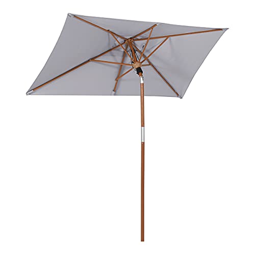 Sekey® 200 × 150 cm Rechteckig Holz Sonnenschirm Marktschirm Gartenschirm Terrassenschirm Balkonschirm mit knickbar UV50+ Taupe