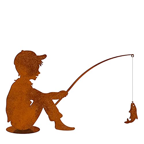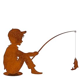 Rerum & Consilium Teichdeko Angler für den Gartenteich aus Stahl | Gartendeko 80 x 129 cm | in Edelrost-Optik