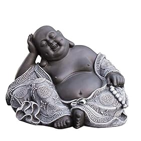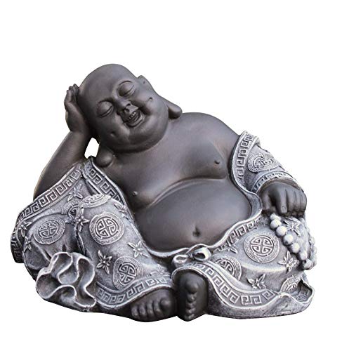 Steinfigur Buddha in Schiefergrau, Figur Deko Statue Garten frostsicher