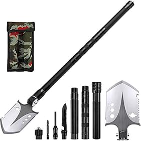 Klappspaten 10 Funktionen Multifunktional-Schaufel von 3 Längen-Kombinationen rostfrei Spaten aus Premiumer legierter Stahl, tragbar Abnehmbar Schaufel für Überleben/Garten/Camping/Outdoor/Wandern