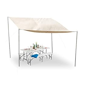 Relaxdays Sonnensegel rechteckig, steckbare Stangen, Seile, Erdspieße, wasserfest, UV-beständig, Polyester, 3x4m, beige