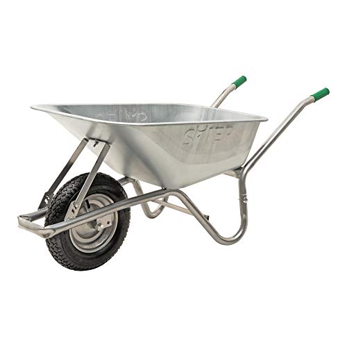 STIER Schubkarre, 100l Muldenvolumen, 120kg Tragkraft, mit Luftbereifung, vollverzinkt, rutschhemmende Griffe