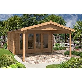 Alpholz Gartenhaus Lappland-A aus Massiv-Holz | Gerätehaus mit 44 mm Wandstärke | Garten Holzhaus inklusive Montagematerial | Geräteschuppen Größe: 380 x 574 cm | Satteldach