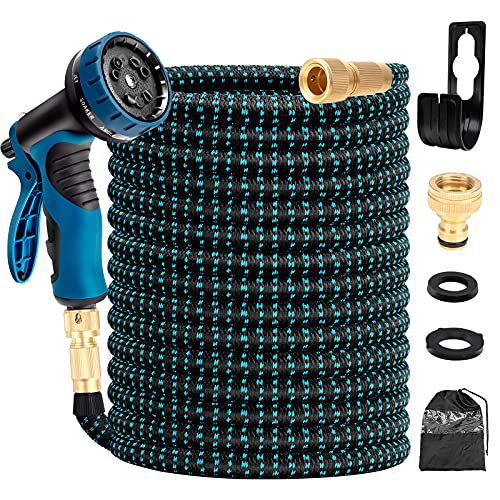 QacQoc Flexibler Gartenschlauch 15m/50ft Wasserschlauch Flexibel mit 10 Funktionen Sprühdüse 1/2 Zoll & 3/4 Zoll EU-Standard Vollmessingarmaturen Flexischlauch Dehnbar