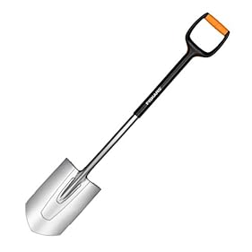 Fiskars Gärtnerspaten für harte, steinige Böden, Spitz, Länge: 108 cm, Qualitätsstahl-Blatt/Glasfaserverstärkter Kunststoff-Stiel, Schwarz/Orange, Xact, M, 1003684