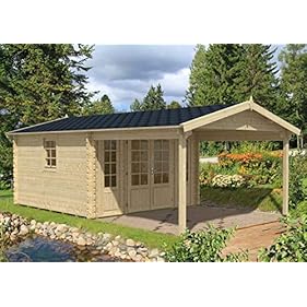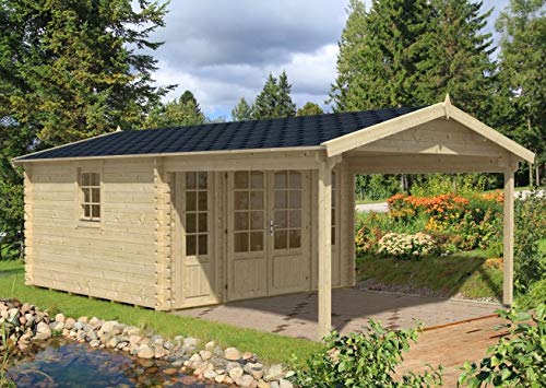 Alpholz Gartenhaus Spessart aus Massiv-Holz | Gerätehaus mit 44 mm Wandstärke | Garten Holzhaus inklusive Montagematerial | Geräteschuppen 380 x 660 cm | Satteldach