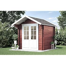 Alpholz Gartenhaus Lena-44 aus Massiv-Holz | Gerätehaus mit 44 mm Wandstärke | Garten Holzhaus inklusive Montagematerial | Geräteschuppen Größe: 250 x 250 cm | Satteldach