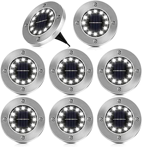 Solarleuchten Bodenleuchte für Garten, 8 Stück 12 LED Solarleuchte Solar Außen Edelstahl Wasserdichtes IP65 Garten Licht Landschaftslichter für Lawn Pathway Patio Garden, Kaltes Weiß