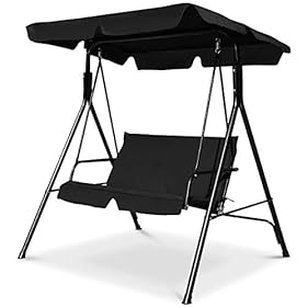 RELAX4LIFE Hollywoodschaukel, Schaukelbank mit verstellbarem Sonnendach, Gartenschaukel für 2 Personen, Gartenbank mit robustem Metallrahmen & bequemer Sitzfläche, bis 180 kg belastbar (Schwarz)