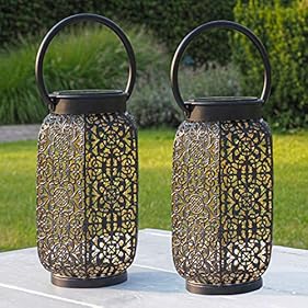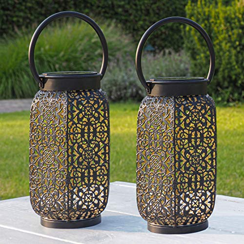 Gadgy Orientalische Laterne | 2 Stück | Solar Gartendeko für Außen | Led Solarlampe | Schwarz & Gold Metall | Marokkanische Dekolampen für Draußen