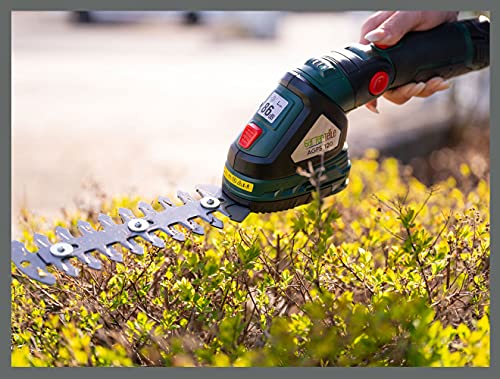 ✔ Lieferung beinhaltet: gartenteile Akku-Kombigerät, Strauchscheren-Aufsatz mit Messerschutz, Grasscheren-Aufsatz mit Messerschutz, Drucksprüher-Aufsatz, Akku, 1h-Schnell-Ladegerät; die Grasschere hat eine Schnittbreite von 10 cm, Schnittlänge der Heckenschere 16 cm, Fassungsvermögen des Sprühkopfs 1 Liter, Gewicht 0,86 kg