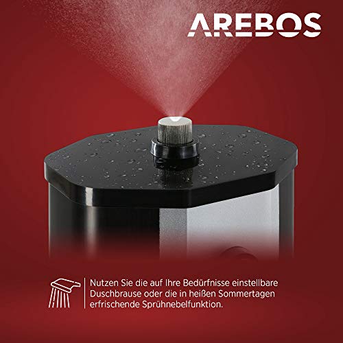 Umweltfreundlich und energiesparend dank Sonnenenergie: Bei geeigneter Standortwahl und optimaler Sonneneinstrahlung kann sich das Wasser in dem Duschtank der Gartendusche bis auf 60° C erhitzen. Dank der mitgelieferten Schrauben, Dübel und Unterlegscheiben ist die AREBOS Solardusche in Kürze einsatzbereit.