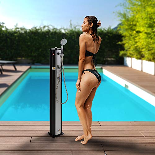 Regulierbare Wassertemperatur: Über eine Einhebelmischbatterie vermischt sich das warme Wasser im Tank mit dem kalten Wasser aus dem Gartenschlauch. Somit lässt sich die Wassertemperatur stufenlos nach Ihren Bedürfnissen einstellen.