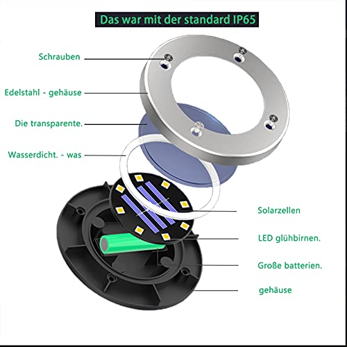 [Wasserdichter und Edelstahlkörper]: Das Solarlicht verfügt über einen wasserdichten und Edelstahlkörper, der bei unterschiedlichem Wetter gegen ultraviolette Strahlen und Korrosion beständig ist und sich hervorragend für Außenbereiche eignet.