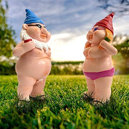 ✔【 Zwergen-Statue】 Diese Mini-Statuen sind in Zwergbild mit lustigen Posen gestaltet, die sehr liebenswert und lustig sind, sie halten Getränke in ihren Händen und tragen eine Sonnenbrille, sie scheinen für einen Urlaub zu gehen, aber sie scheinen vergessen zu haben, ihre Kleidung anzuziehen.