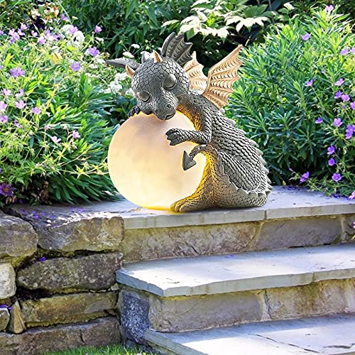 ✨【Einzigartiges Design】Dieser niedliche Drache ist der ultimative Vertreter des Friedens. Lächle allen zu, die ihn sehen. Die sonnenscheinende Kugel macht Ihren Garten nachts voller Leben