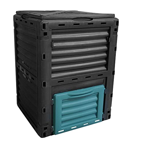 Ihr aktiver Beitrag zum Umweltschutz + Förderung von Kompostern durch Kommune möglich (bitte nachfragen). Der YERD Schnellkomposter fügt sich mit seinem schwarz/grünen Design super elegant und unaufdringlich in Ihr Garten-Design ein. Die dunkle Farbe unterstützt die Wärmeentwicklung im Inneren des Schnellkomposters! Gewinnen Sie jetzt schnell wertvollen Reifekompost bzw. Humus-Dünger aus Ihren hochwertigen Bio-Abfällen und entnehmen Sie den gereiften Kompost einfach unten aus der Klappe!Klassische Komposthaufen benötigen ca. 1-2 Jahre zur Kompostierung biologischen Materials und müssen gewendet werden. Mit einem geschlossenen Schnellkomposter wie dem YERD 300 Liter Komposter, beschleunigen Sie durch das geschlossene System den Kompostiervorgang auf 3-6 Monate (je nach Jahreszeit). Denn anders als bei einem klassischen Komposthaufen, bleibt die im geschlossenen Komposter entstehende Wärme im System und kann so zur schnellen biologischen Kompostierung genutzt werden…. Ein Bio-Komposter… …spart Hausmüll und recycelt biologische Abfälle sinnvoll (sie haben bis zu 30% weniger Hausmüll) …spart künstlichen Dünger und ist ein biologischer Nährstoff-Lieferant für Ihre Pflanzen …ein Schnellkomposter kann durch Abfallvermeidung, je nach Kommune, gefördert werden …reduziert die zu entsorgenden Gartenabfälle. Durch die schnelleren Durchlaufzeiten eines Schnellkomposters können Sie größere Abfallmengen kompostieren Technische Daten YERD biologischer Komposter geschlossener Gartenkomposter für Bio-Abfälle Volumen: 300 Liter Höhe: 83 cm, Länge: 61 cm, Breite: 61 cm Material: 100% PP (Polypropylen, einem sehr häufig im Lebensmittel-Bereich verwendeten Kunststoff)
