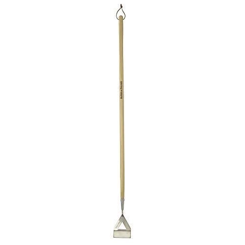 Kopf aus hochwertigem Edelstahl und Griff aus Eschenholz, geformt für komfortablen Halt. Der lange Griff ermöglicht aufrechtes Arbeiten und müheloses Erreichen aller Stellen.