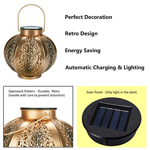 【Schöne Dekoration, Ideales Geschenk】 Sechseckiges solarlaterne für außen: ca. 18* 18.2* 20. Das solarlaterne besteht aus Eisen (goldenes Finish) und Kunststoff, einem dekorativen Licht. LED Solar Laterne ist perfekt für die Dekoration Ihres Gartens, Rasens oder Patios. Die solarleuchten aussen garten haben ein hohles Design und die Reflexionen der Muster sind sehr schön. Sie schaffen eine romantische Atmosphäre, die Ihrem Garten, Ihrer Veranda, Ihrem Außenbereich, Ihren Partys, Festivals usw. e