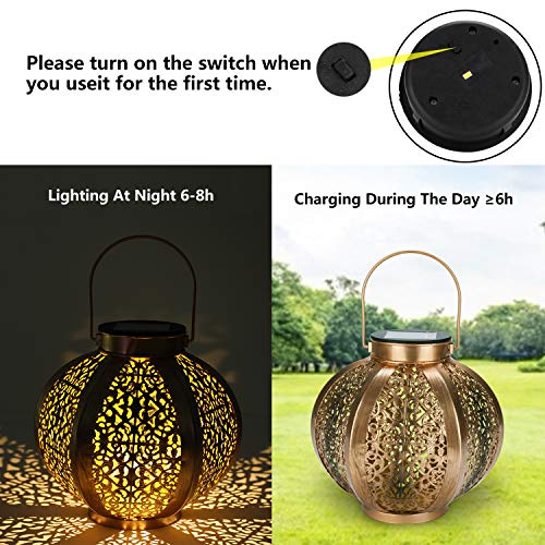 【Tragbar und Garantie】 Hängend solar laterne gartenlaterne ist kein Netzkabel, kein Strom und kein herkömmlicher Stromverbrauch erforderlich. Sie können das LED Solarlicht aufhängen oder auf den Boden stellen. Wir geben Ihnen 24 Monate Garantie. Bei Fragen können Sie sich gerne an uns wenden