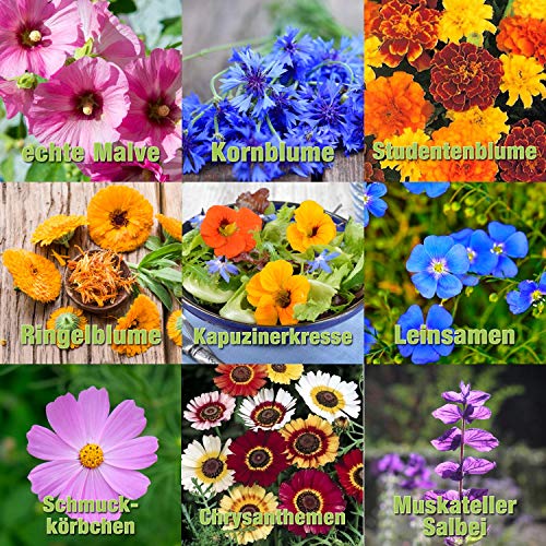 100% Gourmet: Essbare Blüten für Anzucht auf Balkon, Terrasse, Garten oder wo immer sie diese tolle Blütenpracht gerne haben wollen. Bringen sie Farbe auf ihren Teller. Ideal auch als Dekoration für Torten und andere Nachspeisen.