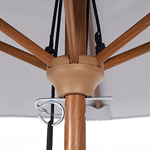 Stange und Rippen mit Holzmaserung – Der Marktschirm wird von einer Aluminiumstange mit einem rostfreien Pulver in Holzmaserung getragen, rost- und korrosionsfrei. Die Holzstruktur verleiht dem Schirm ein klassisches Design. Leichter und langlebiger als Massivholz-Sonnenschirme. Einfach zu montieren;