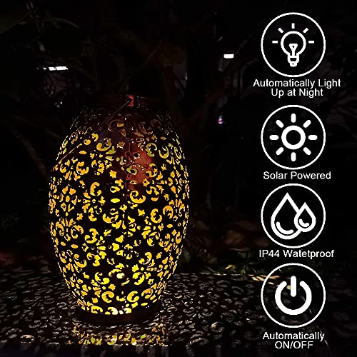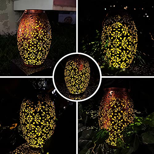 ☀️ 【Wunderschönes Muster】 Unsere große Solarlaterne Dekorativ ist aus Metall und Kunststoff gefertigt, hat einen rustikal aussehenden Stil mit einem schönen ausgehöhlten Muster, die warmweiße LED verleiht dem Garten Schönheit und verfügt über ein fabelhaftes Schattenmuster. Die Oberfläche der Laterne ist bewusst als alter Effekt gestaltet, NICHT als QUALITÄTSFEHLER. Perfekt für den Garten, die Terrasse, den Garten, die Haustür, den Weg, die Straße, den Rasen usw.