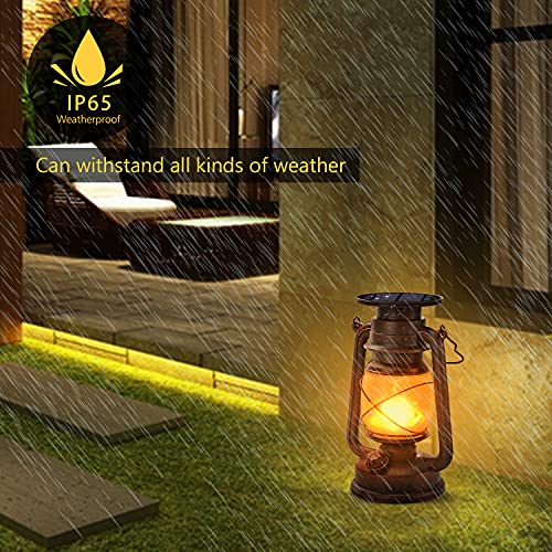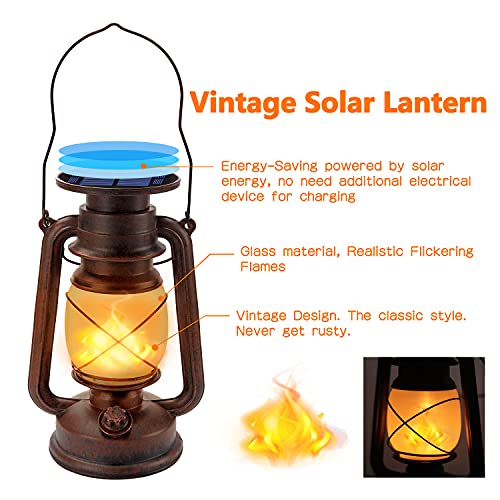 Vintage Solarlaterne Für außen Solar-LED-Sturmlampe Warmweiß Ultra Helle Dimmbare LED-Sturmleuchte Retro Design LED-Sturmlaterne Mit Flammen-Effekt Wasserdicht Für Garten,Camping (1Pack)
