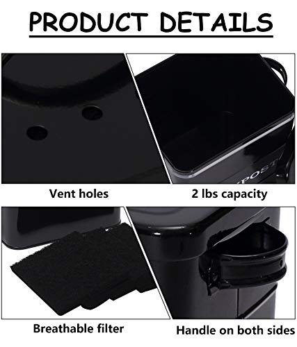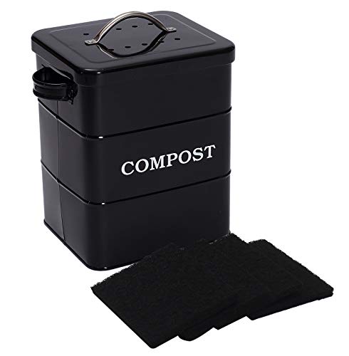 Xbopetda Edelstahl-Komposteimer für Küchenarbeitsplatte, 3 Liter, inkl. Kohlefilter, mit Deckel und Griff, Komposter für Zero-Abfall-Recycling, Komposteimer, Komposteimer – Schwarz
