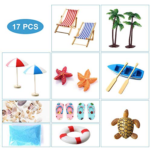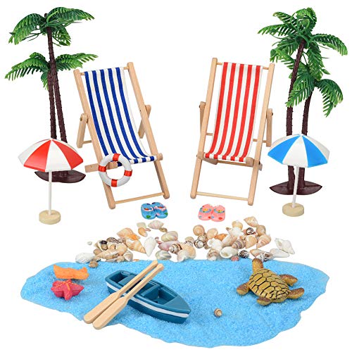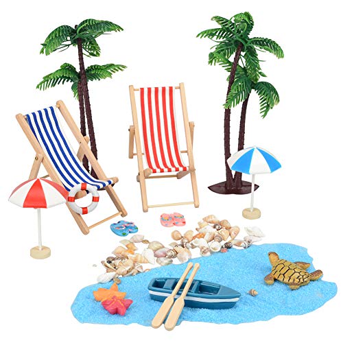 Das Mini-Dekoset im Strandlandschafts-Design eignet sich für Mini-Sandkiste, Miniaturgarten, Strand, Puppenhaus, Fensterbank und Zimmerpflanzen-Dekoration. Die unterschiedlichen Teile sind ihren großen Vorbildern liebevoll nachempfunden, sorgfältig gefertigt und sehr hübsch anzusehen.